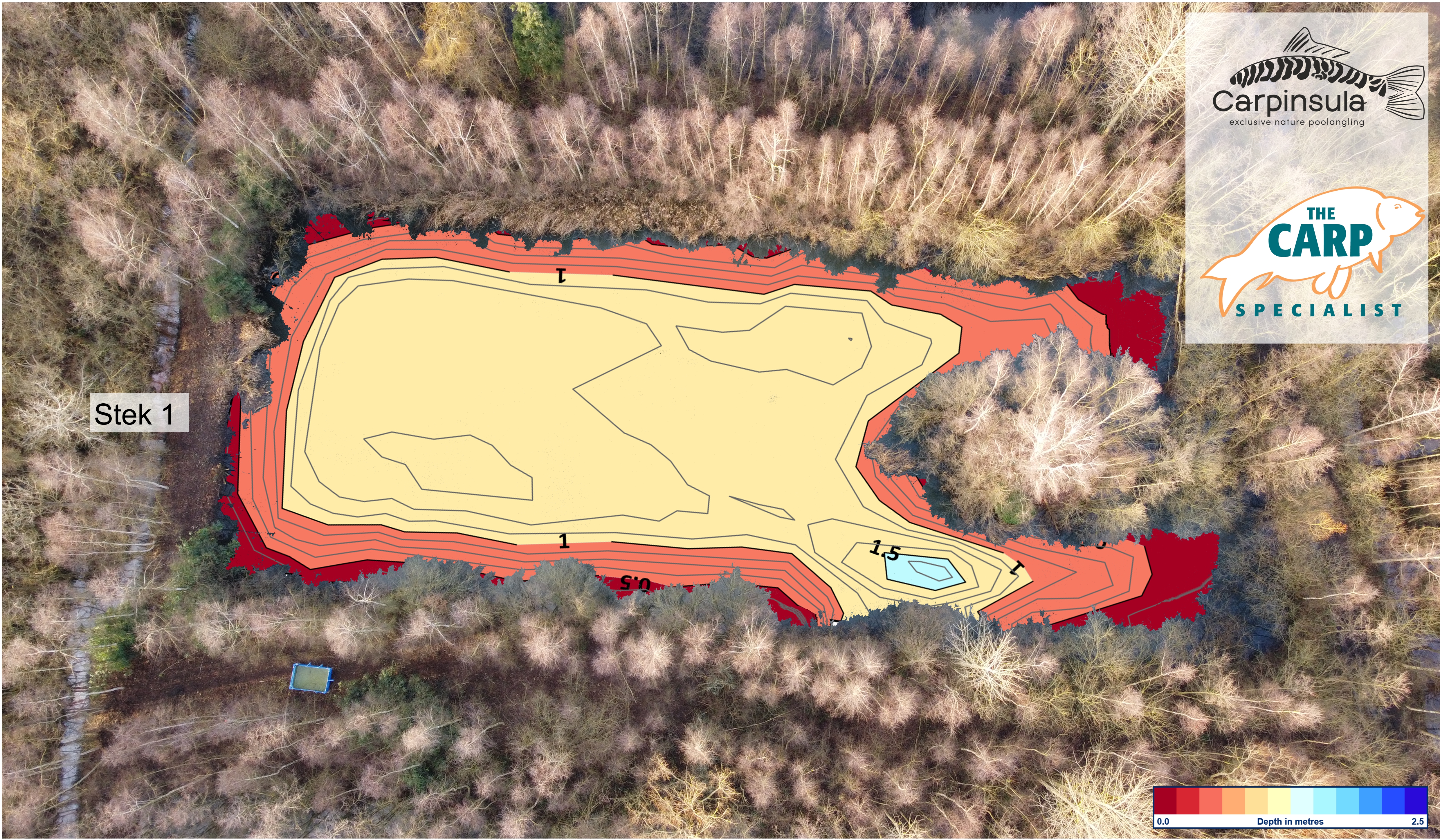 Diepte kaart van de Carpinsula Frenzy Pool voor de Carplounge RT4 V4 en RT7 V4