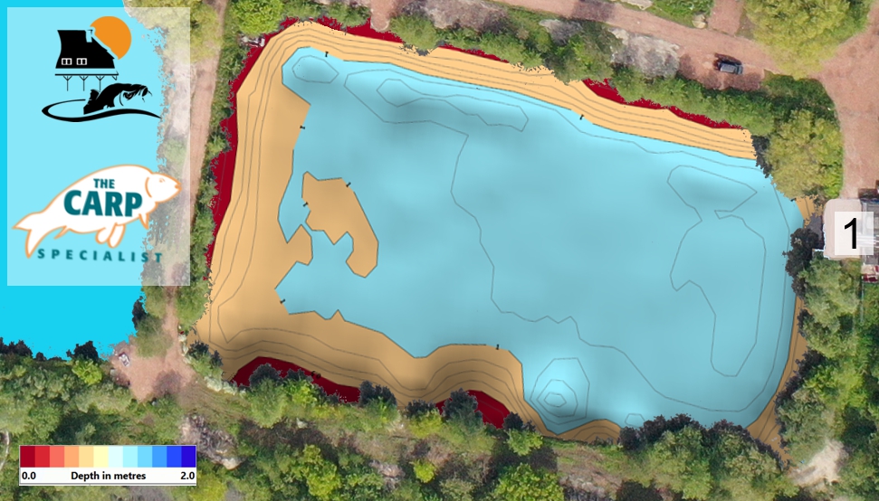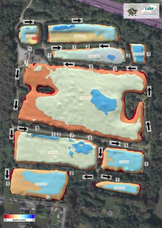 Diepte kaart van Tine's lake op de karperhoeve voor de Carplounge RT4 V4 en RT7 V4