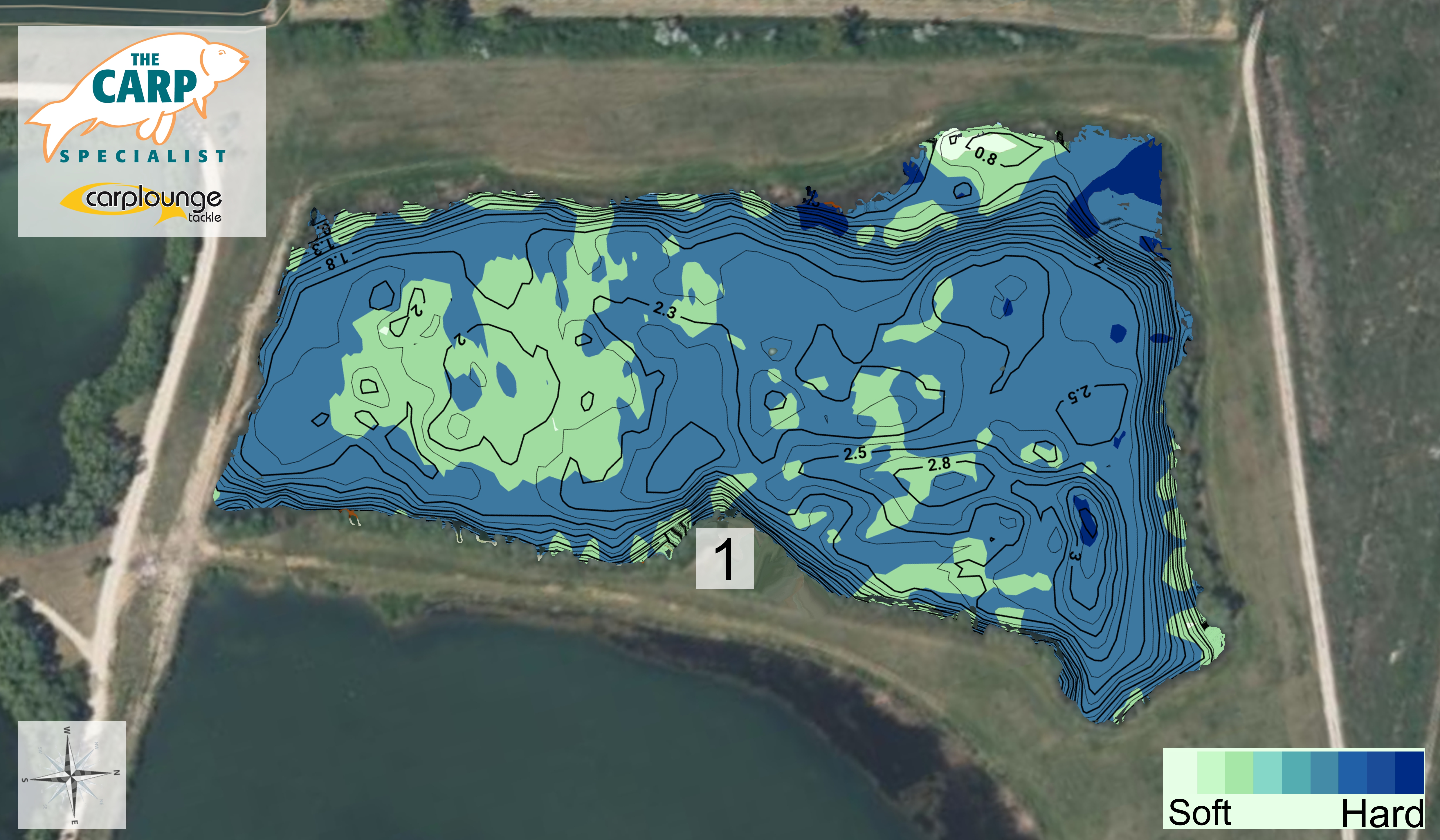 Diepte kaart van Goncourt lakes - Etang Mesange, voor de Carplounge RT4 V4 en RT7 V4