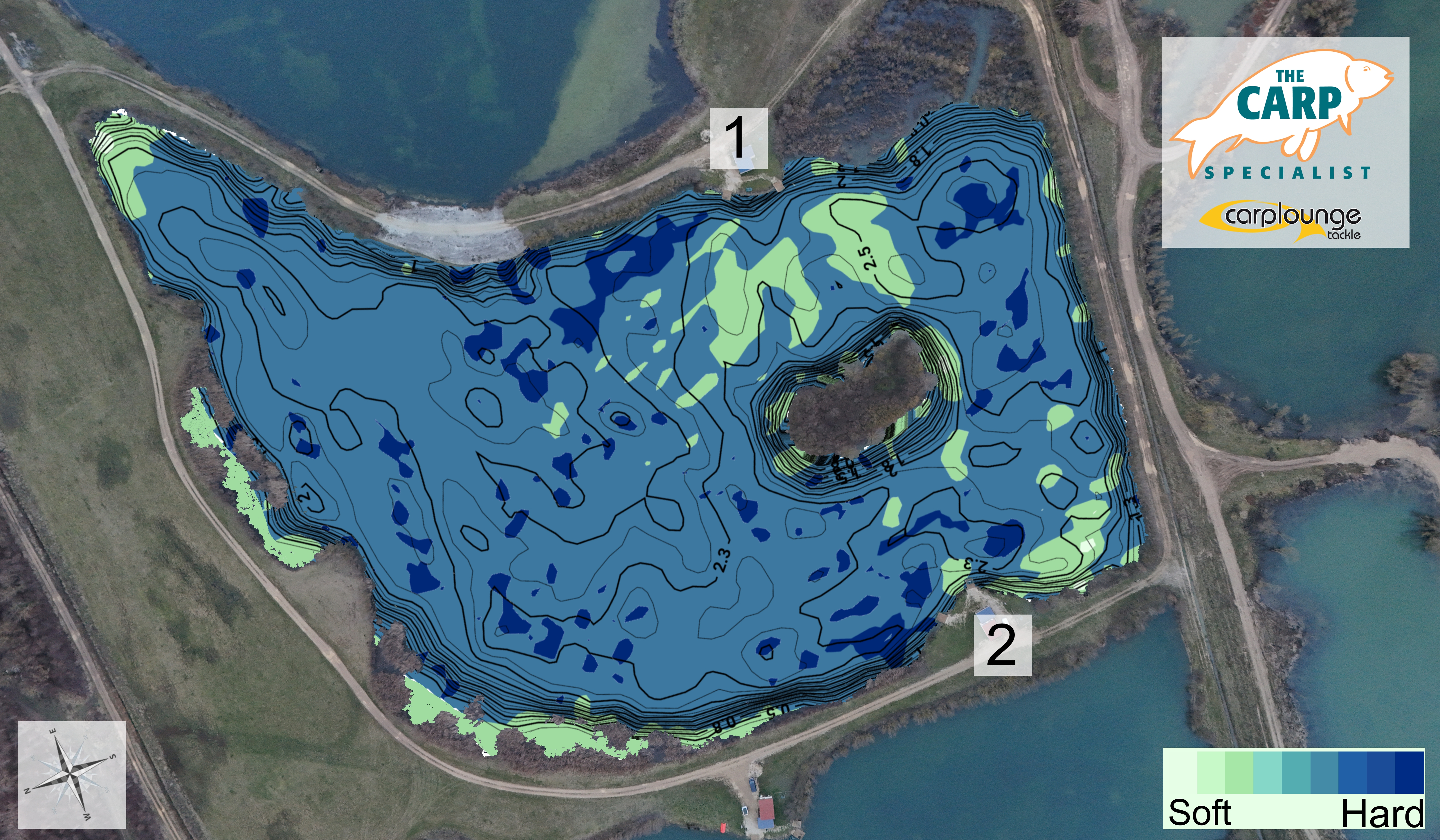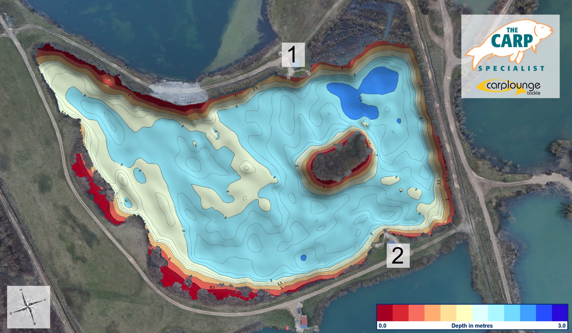 Diepte kaart van Goncourt lakes - Etang Mesange voor de Carplounge RT4 V4 en RT7 V4