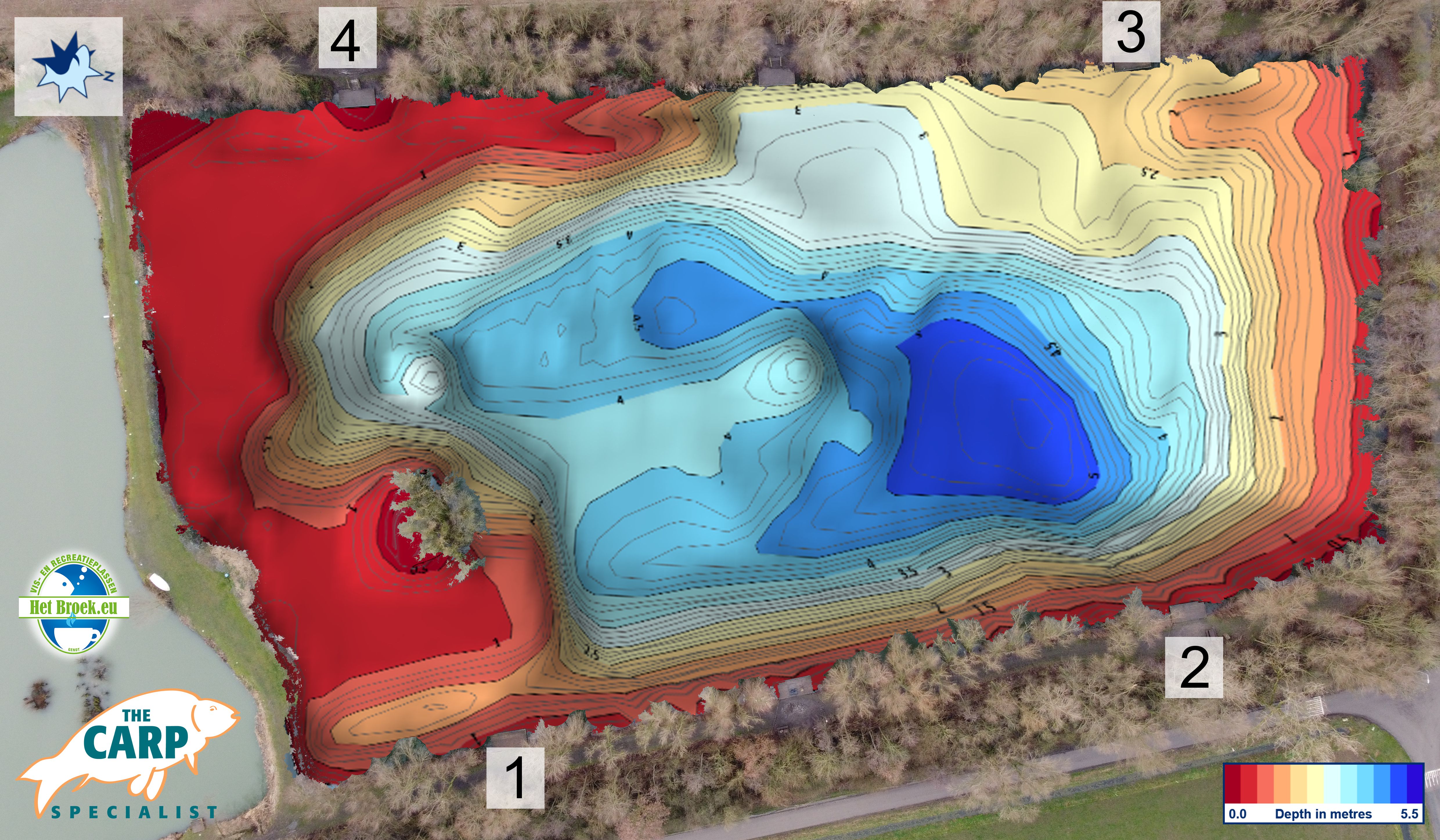 Diepte kaart van het Broek voor de Carplounge RT4 V4 en RT7 V4