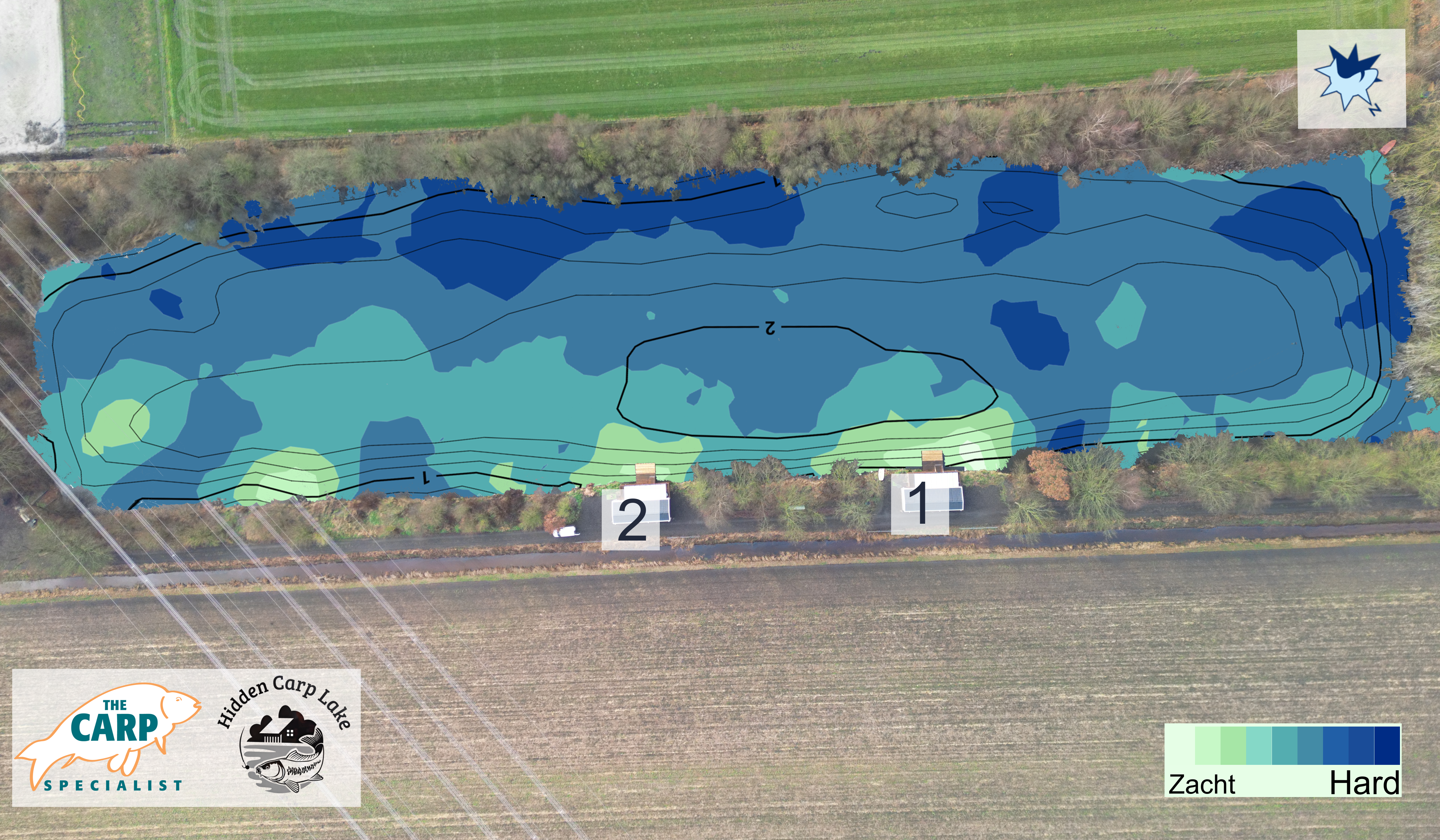 Diepte kaart van Hidden carp lake, voor de Carplounge RT4 V4 en RT7 V4