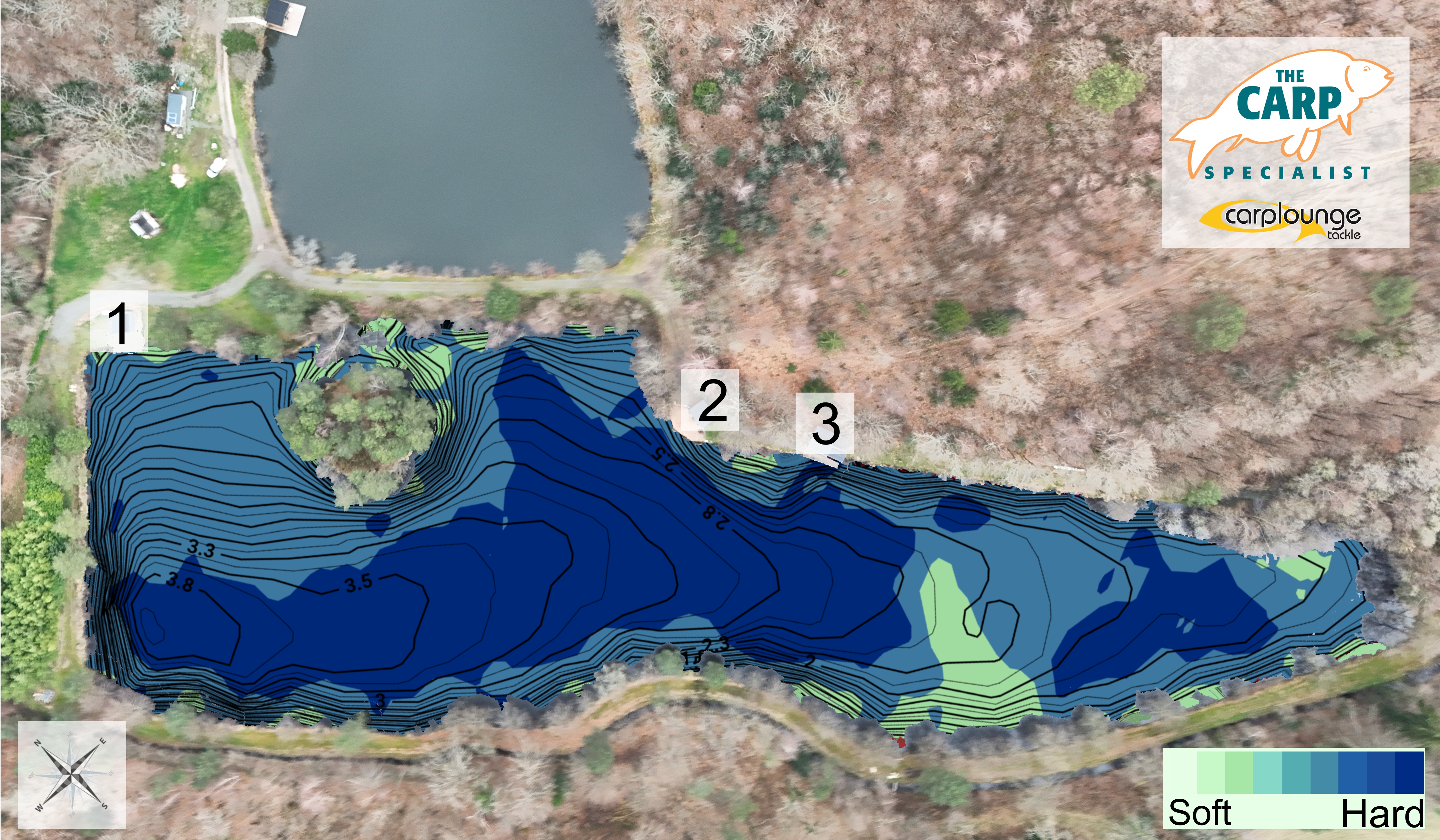 Diepte kaart van Jarlat Big Lake voor de Carplounge RT4 V4 en RT7 V4
