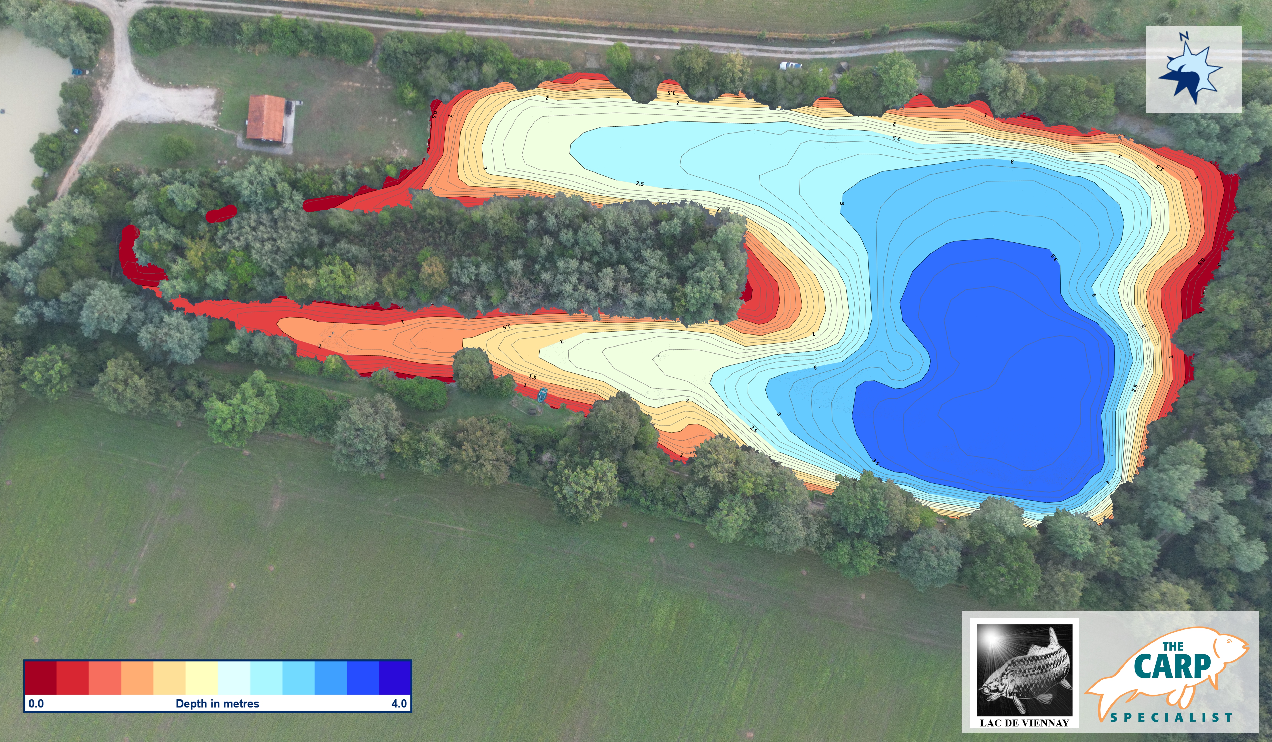 Diepte kaart van Lac de Viennay - Alberts Lake voor de Carplounge RT4 V4 en RT7 V4