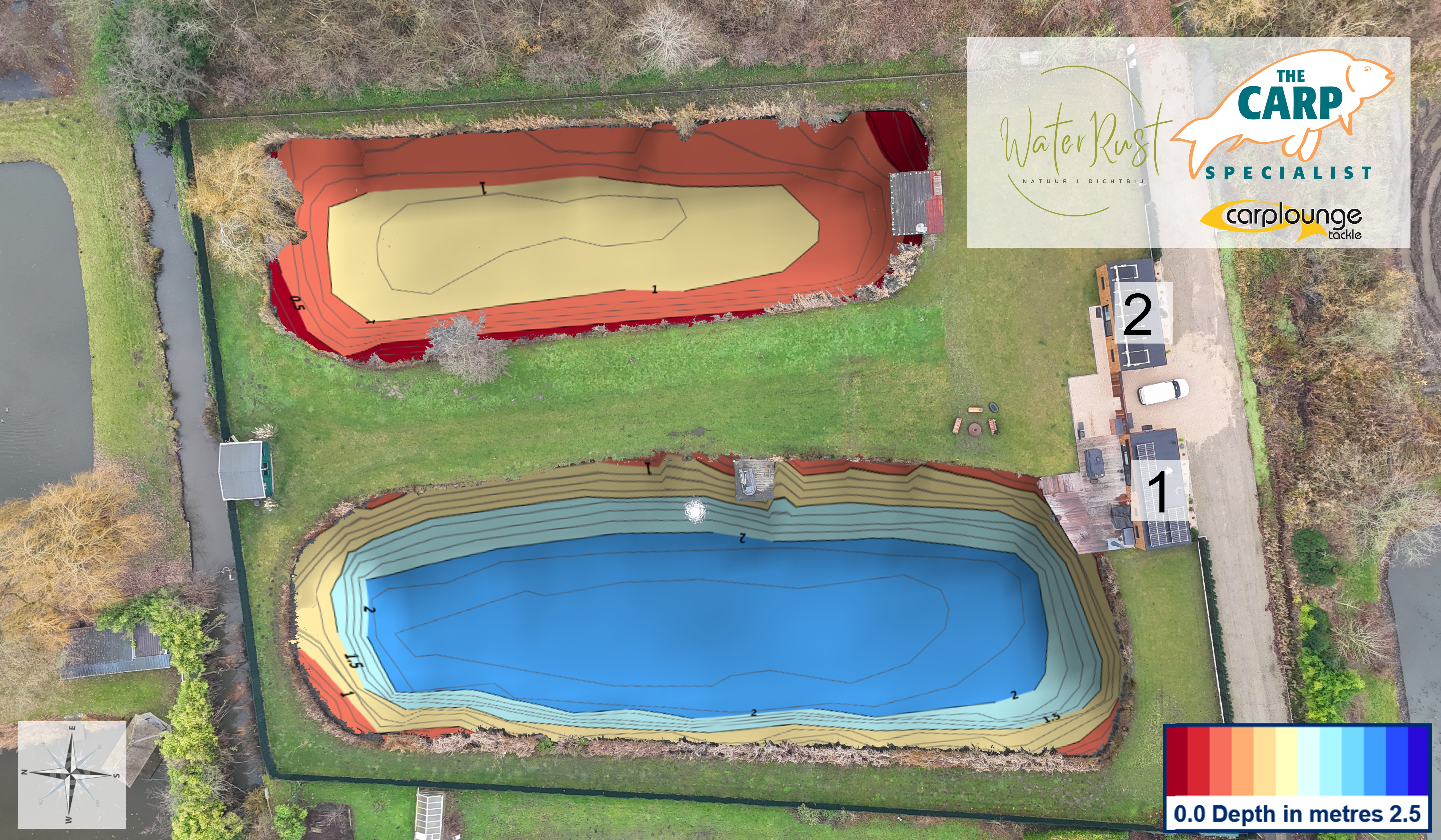 Diepte kaart van Waterrust voor de P.K. Baitboats en Navigator Baitboats